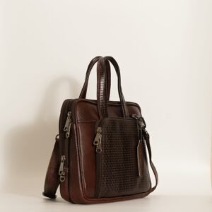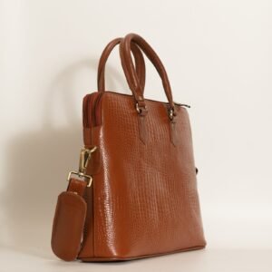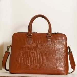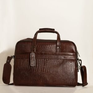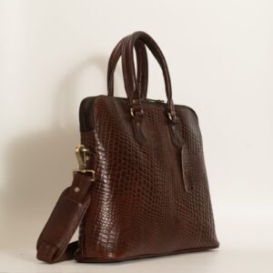 Ma Fierté – Croc-Textured Leather Laptop Bag - Brown Edition