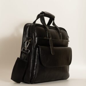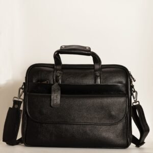 Ma Fierté Genuine Leather Executive Laptop & Office Bag – Black Textured Finish