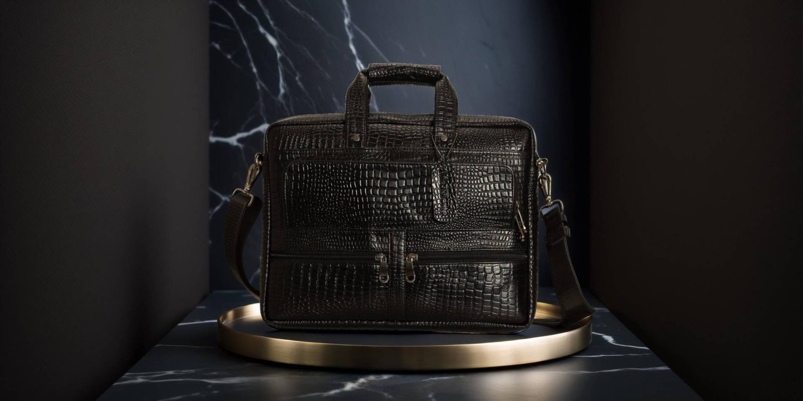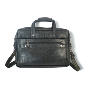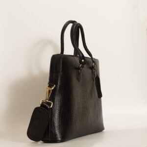 Ma Fierté Dual-Compartment Croc-Textured Genuine Leather Office Bag – Prestige Black Edition
