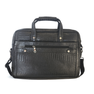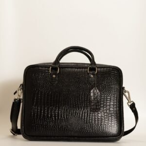 Ma Fierté – Croc-Textured Leather Laptop Bag - Black Edition
