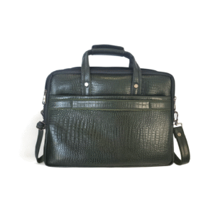 Ma Fierté Dual-Compartment Croc-Textured Genuine Leather Office Bag – Emerald Green Edition
