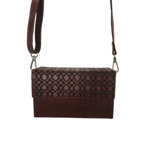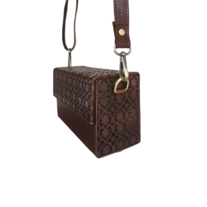 Ma Fierté Heritage Trellis Carved Leather Compact Crossbody Bag