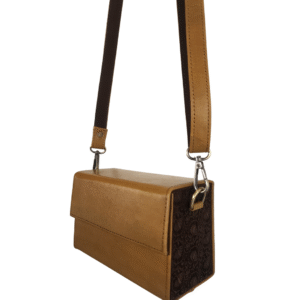 Ma Fierté Yellow Ochre Petal Carved Wood and Leather Crossbody Bag