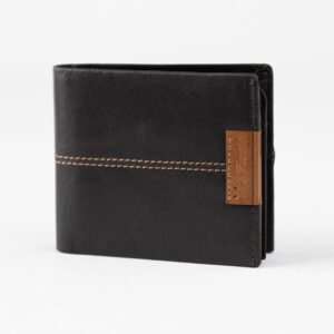Ma Fierté Classic Black Leather Wallet with Tan Accent & RFID Protection