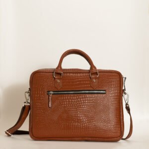Ma Fierté – Croc-Textured Leather Laptop Bag - Tan Edition