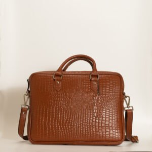 Ma Fierté Professional Laptop Briefcase - Crocodile Textured Leather in Tan
