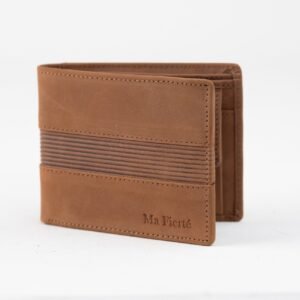 Ma Fierté Rustic Tan Leather Bi-Fold Wallet with Contrast Stripe
