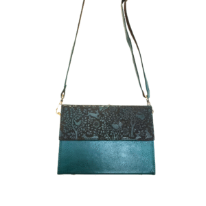Ma Fierté Crossbody Bag for Women (Carved Wood & Leather) Deep Teal