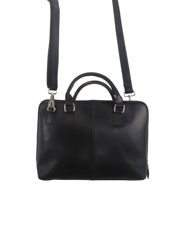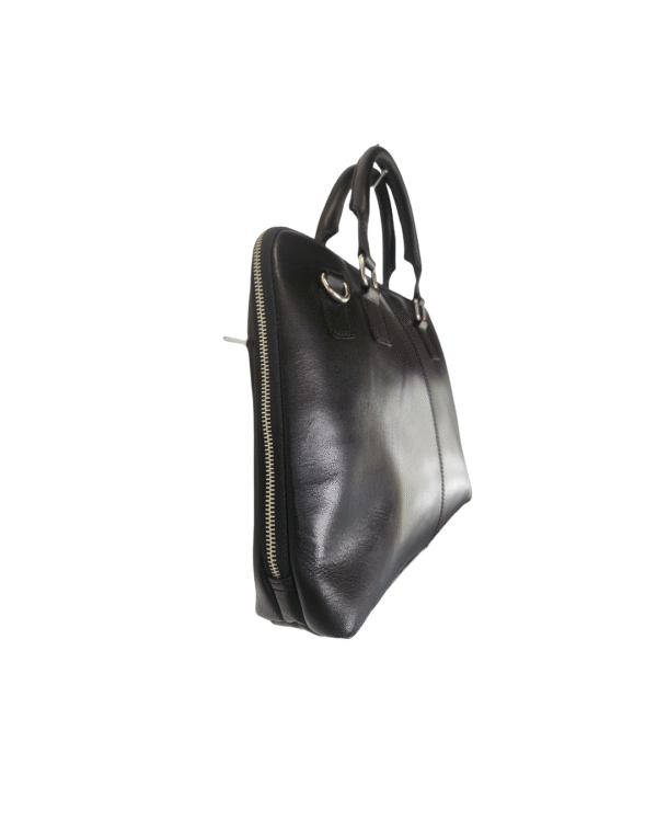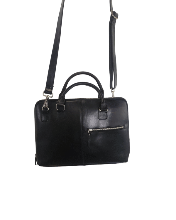 This sleek leather briefcase is crafted from genuine cowhide leather and designed for a sharp, professional look. With a clean structured silhouette, smooth finish, and secure zip-around closure, it’s ideal for office use, meetings, and daily commuting. The dual top handles and detachable adjustable shoulder strap offer comfortable carrying, while the organized interior keeps your laptop and essentials neatly in place.