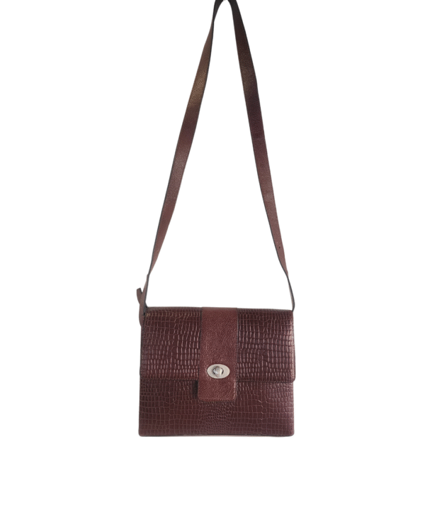 Rich brown croco-embossed leather