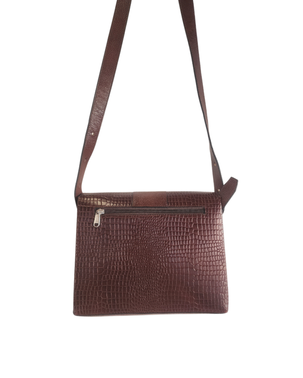This handcrafted women’s crossbody bag is made from high-quality genuine leather with an elegant croco-textured finish. Designed for everyday sophistication, it offers a compact yet spacious structure that suits casual outings, office wear, and evening use. The rich texture, clean silhouette, and adjustable strap make it a timeless accessory for modern women