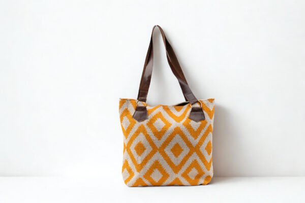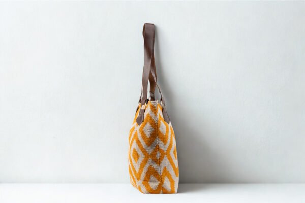 A perfect balance of handcrafted tradition and modern utility, this tote bag from Ma Fierté is made from durable handwoven canvas with premium leather handles. Designed for everyday versatility, it offers ample space for essentials while maintaining a refined and stylish appeal. Whether for work, travel, or casual outings, this tote seamlessly complements your lifestyle.