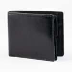 Classic Black Leather Wallet with Gloss Finish & Coin Pocket
