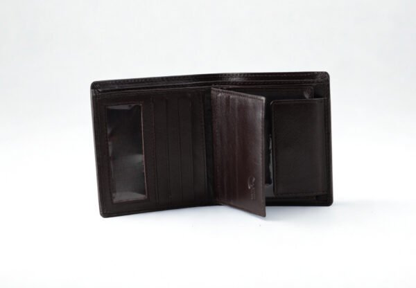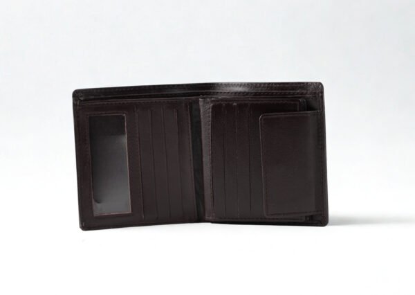 Ma Fierté Classic Dark Brown Bifold Leather Wallet with Dual ID Window and Coin Pocket