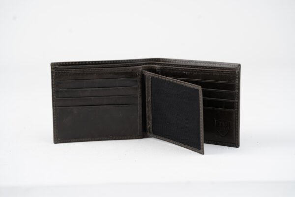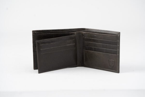 Ma Fierté Classic Dark Brown Bifold Leather Wallet with Dual ID Window and Coin Pocket