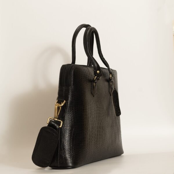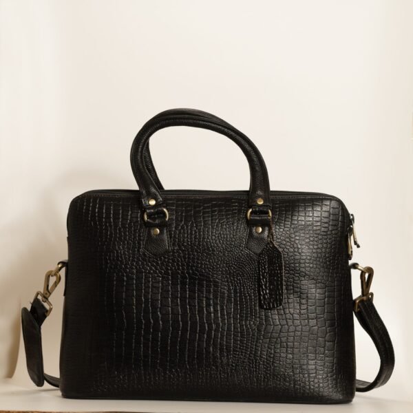 Ma Fierté – Croc-Textured Leather Laptop Bag – Black Edition