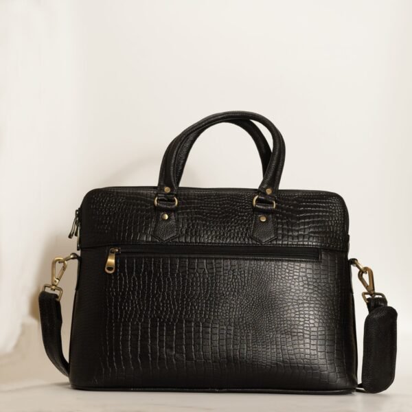 The Black Edition of the Ma Fierté Croc-Textured Leather Laptop Bag is a statement of power and elegance. Crafted with a refined crocodile-textured finish, this bag is designed for professionals who want to stand out with a bold and timeless look. Its sleek black tone matches perfectly with formal and business attire, making it your go-to office companion.