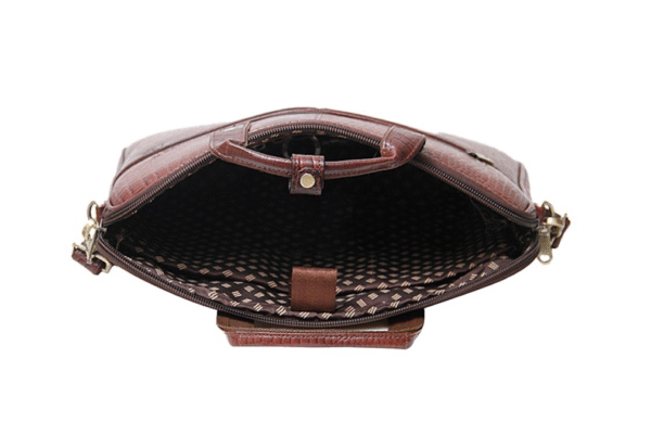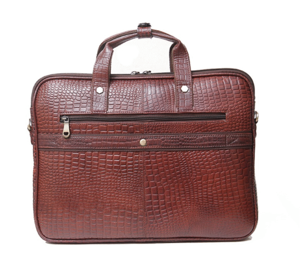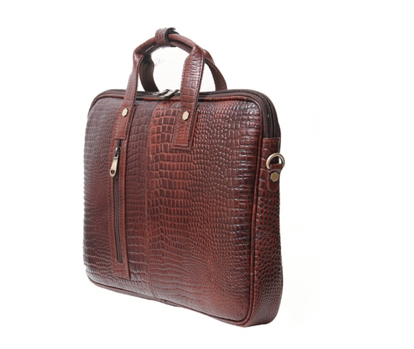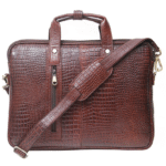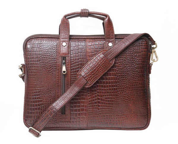 A premium croc-textured laptop bag in a rich brown shade, combining style and practicality. Designed for professionals, it offers organized storage with a sleek look, making it perfect for work, travel, and daily use.
