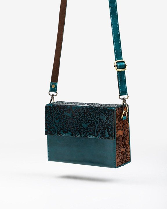 Ma Fierté Crossbody Bag for Women (Carved Wood & Leather) Deep Teal