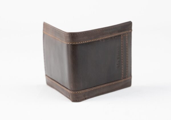 A rugged yet refined wallet crafted from genuine distressed leather, designed for men who value practicality with a touch of heritage style. The dark brown finish with contrast stitching adds character, while the RFID protection ensures modern security. With multiple card slots, a spacious compartment for cash, and a dedicated coin pocket, this wallet is an everyday essential built to last.