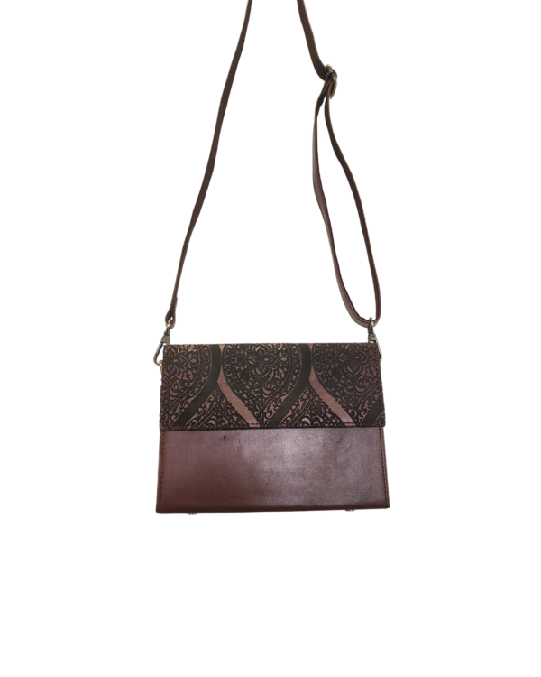 Deep Brown Ornamental Embossed Full-Grain Leather Side Bag