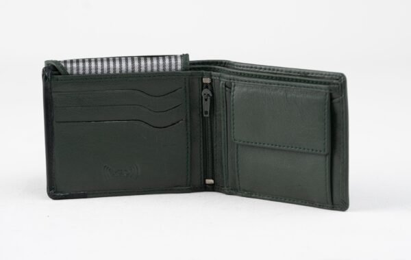 The Ma Fierté Verde Bi-Fold Wallet is a modern statement piece crafted from premium green leather with a contrasting black trim. Designed for the discerning individual, it balances refined style with everyday practicality. Featuring multiple card slots, a secure coin pocket, and a zippered compartment for added security, this wallet ensures your essentials are always organized. With RFID protection and durable stitching, it’s built to last while keeping your information safe.