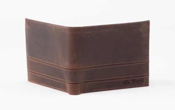 Ma Fierté Genuine Leather Bi-Fold Wallet – Rustic Brown with Dual Stitch Design