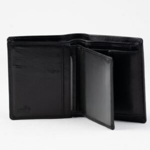 Ma Fierte Vertical Fold Black Leather Wallet with Multi-Slot Design