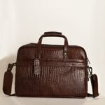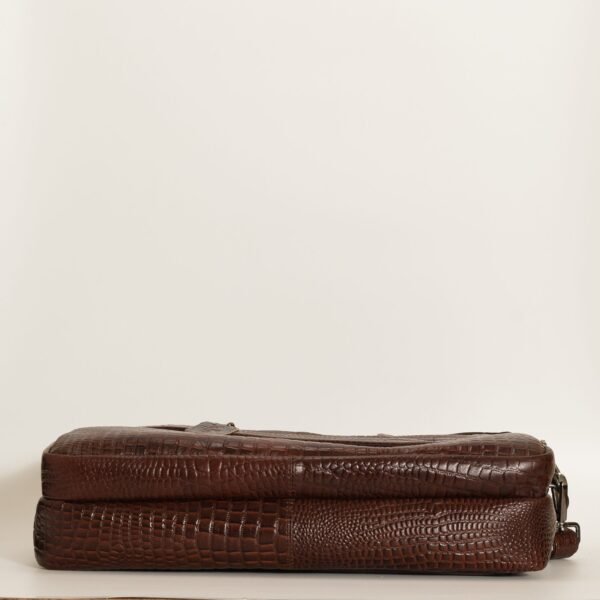 Ma Fierté Brown Croc-Textured Leather Laptop Bag – Brown