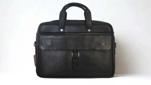 Ma Fierté Genuine Leather Executive Laptop & Office Bag – Black Textured Finish