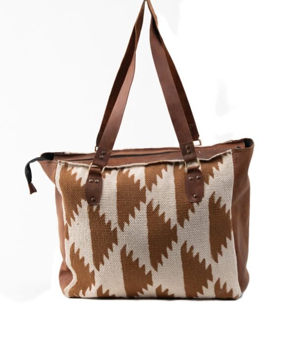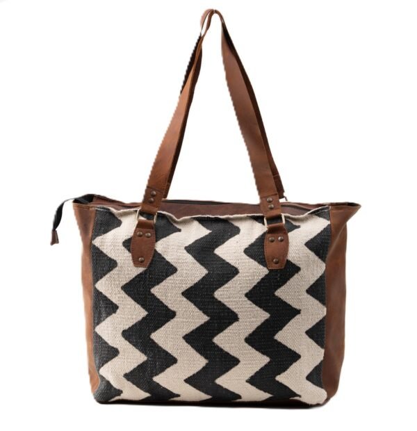 Ma Fierté Artisan Collection Handwoven Canvas Tote Bag - Rust Zigzag