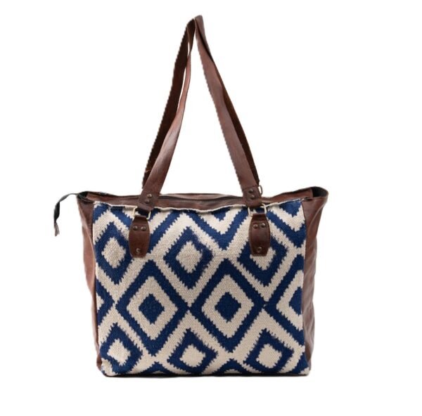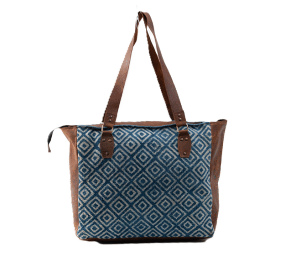 Design: Handwoven cotton fabric on front & back, reinforced with 4-side leather structure