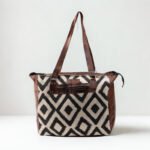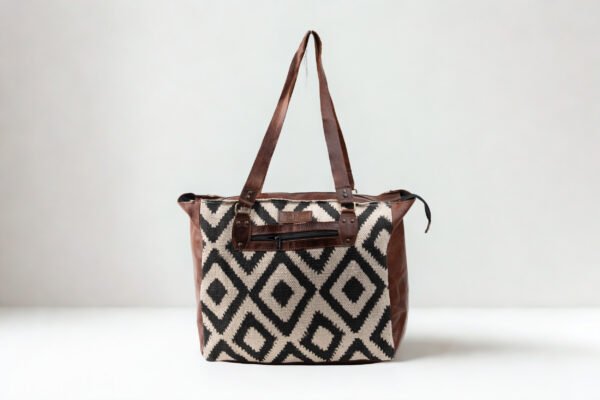 Leather & Cotton Artisan Duffel Bag |Tote Bag – Bold Black Diamond