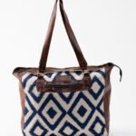 Ma Fierté Handwoven Leather & Cotton Artisan Duffel Bag |Tote Bag – Navy Geometric Diamond