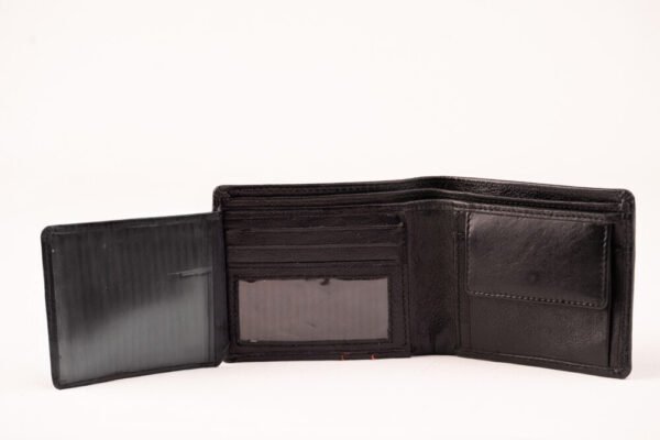 A sleek and practical bi-fold wallet crafted from premium genuine leather, featuring contrast stitching for a touch of style. Designed to keep your cards, cash, and coins organized without the bulk — perfect for everyday use.