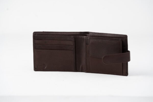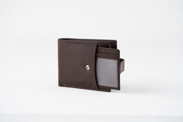 - Type: Bi-Fold Wallet with Snap Button Strap & Detachable Card Holder