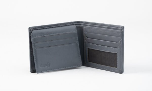 The Ma Fierté Premium Grey Leather Bi-Fold Wallet is a sleek blend of style, practicality, and security. Crafted from high-quality genuine leather with a smooth matte finish, this wallet offers a modern, minimalist look while ensuring durability for everyday use. Its RFID-blocking technology safeguards your cards from electronic theft, giving you peace of mind. The dual-side card slot arrangement, integrated mesh ID window, and spacious bill compartments make it perfect for organizing essentials while maintaining a slim profile.