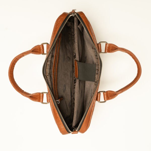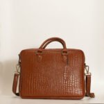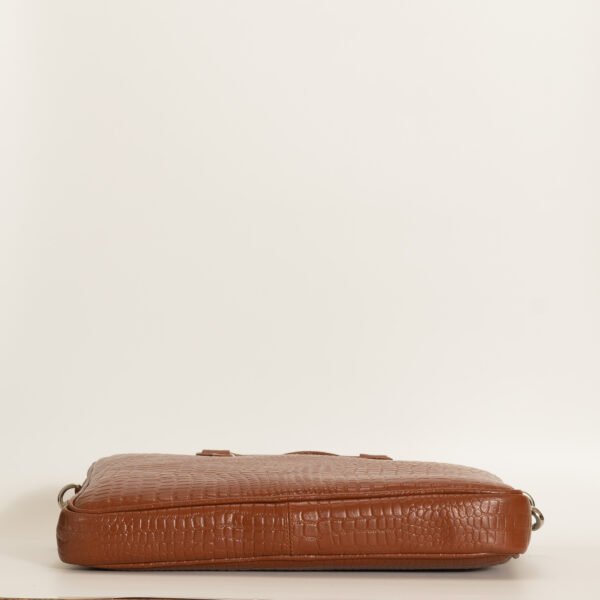 Ma Fierté Professional Laptop Briefcase – Crocodile Textured Leather in Tan