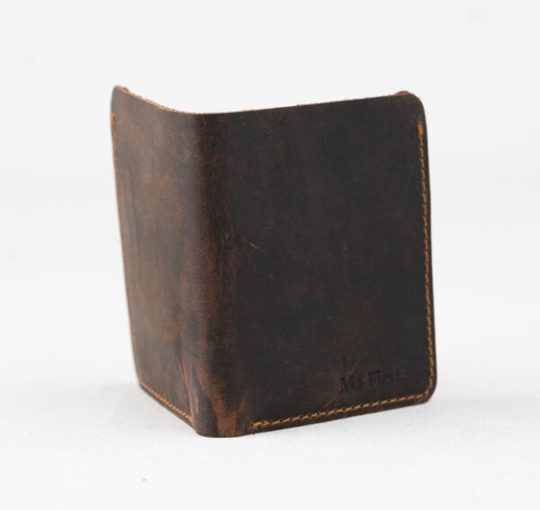 The Ma Fierté Rustic Hunter Wallet captures rugged elegance with a vintage touch. Handcrafted from premium full-grain distressed cowhide leather, this slim vertical wallet matures beautifully, developing a unique patina over time that makes each piece truly one of a kind.