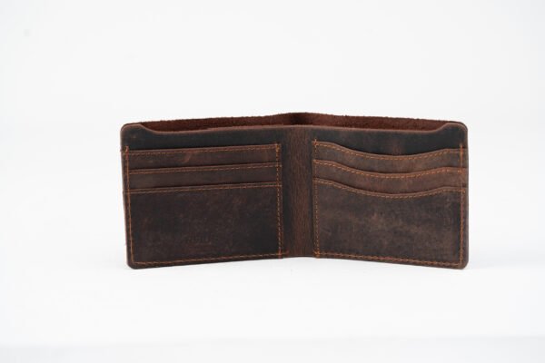 Crafted from premium distressed leather, this Vintage Rustic Brown Wallet from Ma Fierté brings timeless character and durability. Designed for those who appreciate rugged elegance, its naturally worn finish develops a unique patina over time, making each wallet truly one of a kind. With multiple compartments for bills, cards, and essentials, it combines practicality with a bold, rustic aesthetic. The contrast stitching enhances its handcrafted look, ensuring both strength and classic appeal.